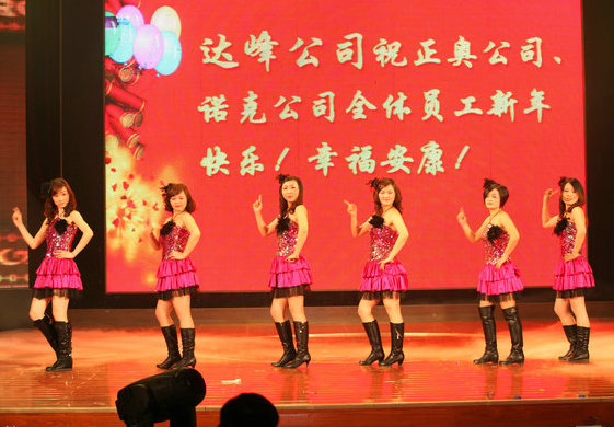 晚會(huì)在喜慶的歌伴舞《美麗的心情》中拉開帷幕,也拉開了2012年新的開始;一線工人《時(shí)尚秀表演》藝術(shù)化的再現(xiàn)工人快樂勞動(dòng)過程,展現(xiàn)了公司青年職工的青春與活力;此次晚會(huì)還特別邀請(qǐng)了邁克爾杰克遜的模仿秀,恒通公司、達(dá)峰公司選送的精彩節(jié)目給觀眾帶來無窮的樂趣;由公司領(lǐng)導(dǎo)王榮華領(lǐng)銜表演的歌曲聯(lián)唱給大家留下了深刻的印象,博得陣陣喝彩;特別是公司總經(jīng)理喬虹演唱、職工伴舞的《今夜無眠》節(jié)目將晚會(huì)推向了高潮,讓大家仿佛置身于中央春節(jié)聯(lián)歡晚會(huì)之中,晚會(huì)抽獎(jiǎng)節(jié)目再次把晚會(huì)氣氛推向高潮。
