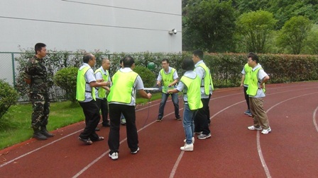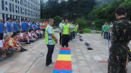 在拓展項(xiàng)目訓(xùn)練中,大家聽從指揮、服從安排,整個(gè)活動在緊張、激烈、歡聲中度過。活動開始,教練把參訓(xùn)人員分成“天藍(lán)色、深藍(lán)色、橙色、紅色、淺綠色、深綠色6支隊(duì)伍。在統(tǒng)一著裝及熱身后,大家便以小隊(duì)為單位投入到緊張的訓(xùn)練課程中?;顒影ㄖ笁喊濉⑺好?、真人CS、呼吸的力量、同心鼓、動力圈等項(xiàng)目,每一項(xiàng)訓(xùn)練,都是一次感動,每一次感動,都帶來一次心靈的震撼。每個(gè)游戲結(jié)束后,大家都對失敗的原因進(jìn)行深刻總結(jié),通過總結(jié)去領(lǐng)悟活動中所蘊(yùn)含的理念和精神。讓大家深刻感受到了溝通、合作、相互激勵、融洽人際關(guān)系以及尊從團(tuán)隊(duì)規(guī)范的重要性。如:“呼吸的力量”項(xiàng)目需要把各自隊(duì)伍分成 “領(lǐng)導(dǎo)組”“指揮組”和“執(zhí)行組”3個(gè)組。各小組成員各負(fù)其責(zé),由“領(lǐng)導(dǎo)組”成員向“指揮組”成員描述“呼吸機(jī)”的構(gòu)造及制作方法,再由“指揮組”傳達(dá)并指導(dǎo)“執(zhí)行組”動手制作。如何向其他成員描述機(jī)器的構(gòu)造和制作方法,以便耗時(shí)最短最高效的完成“呼吸機(jī)”的制作,考驗(yàn)著大家上傳下達(dá)的語言技巧、溝通的能力和協(xié)作能力。還有在最后進(jìn)行的“動力圈”項(xiàng)目,更是將團(tuán)結(jié)協(xié)作作用發(fā)揮到了極致,所有人圍成圓形,用力將柔軟的繩索向后拉扯,讓繩索變成一條鋼鐵般堅(jiān)硬的繩圈,各自的隊(duì)長在繩子上抱圓走完全程!成功與否,在于對團(tuán)隊(duì)成員信任,這種信任感來源于100%的執(zhí)行力和團(tuán)隊(duì)協(xié)作能力!最終每個(gè)隊(duì)的隊(duì)長安全的走完了全程,活動在“眾人劃槳開大船”的激昂音樂中完滿結(jié)束。 一天的活動,每個(gè)人都有一份收獲、一份感悟。大家高效執(zhí)行、自我挑戰(zhàn)、互助協(xié)作、克難攻堅(jiān),增加了大家對團(tuán)隊(duì)的理解和對自我價(jià)值的衡量。激發(fā)了大家克服了困難、克服了人性的弱點(diǎn),真正的領(lǐng)悟到了團(tuán)隊(duì)力量的強(qiáng)大,只要大家心往一起想、勁往一處使,任何困難和挫折都會被我們踩在腳下、拋在腦后,團(tuán)隊(duì)目標(biāo)也一定會實(shí)現(xiàn)!